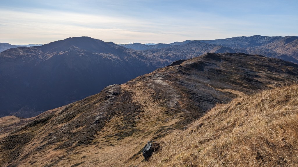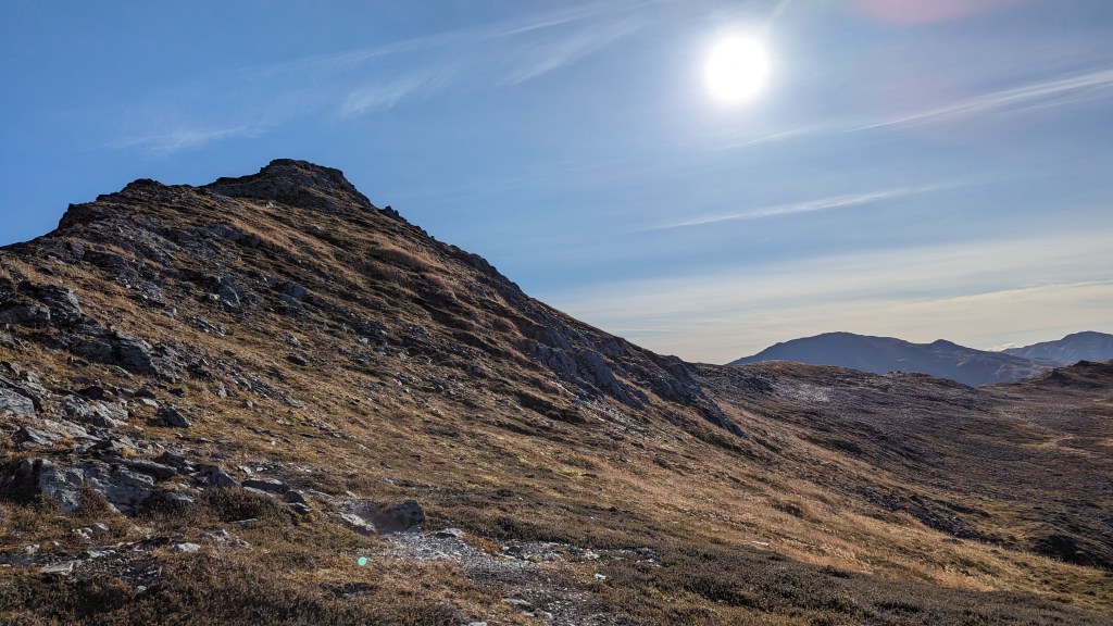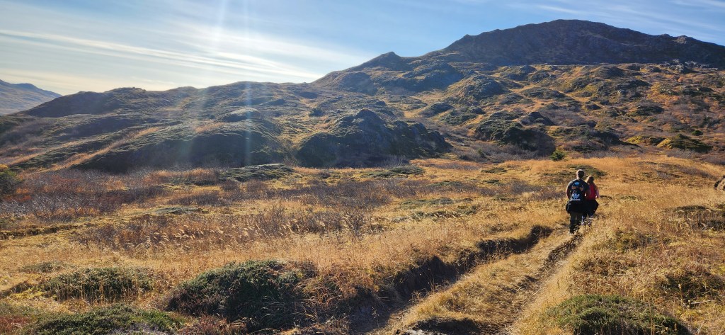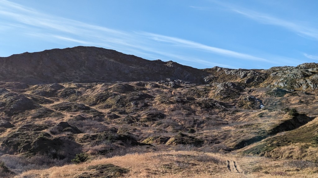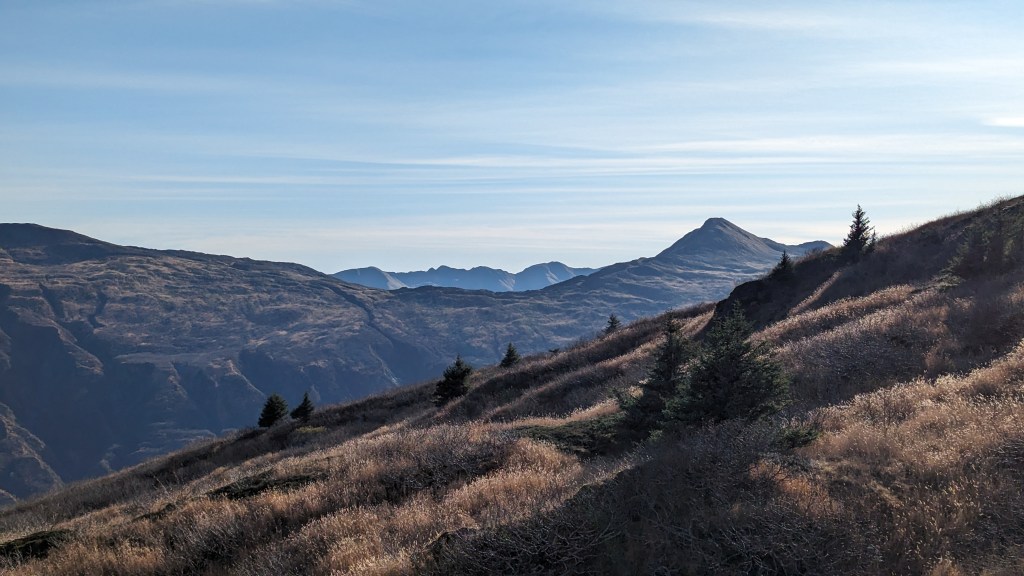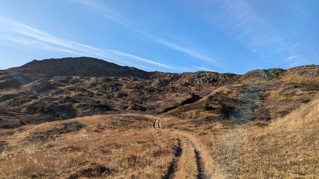 I would like to do this trail again but continue towards Center Mt. The trail to Center Mt splits off from Kashevaroff trail just before the final push to the summit of Kash. The hike from the Kash trailhead to Center Mt and back is about 21 miles. The trail after Kash is gentle and sloping for the majority of the hike, until just before the summit of Center Mt. In the summer, I have heard it is gorgeous, with greenery and wildflowers everywhere.