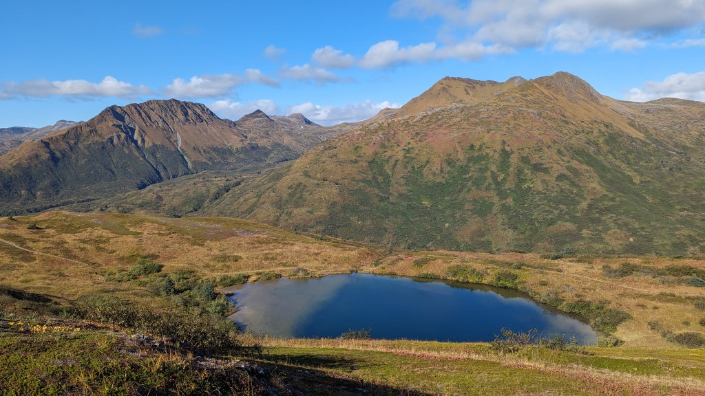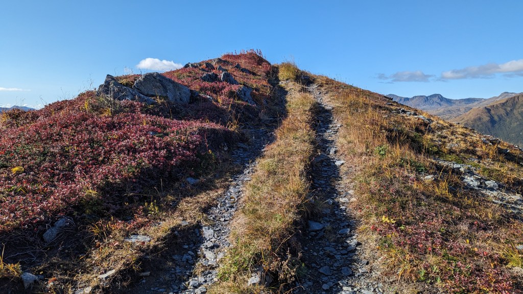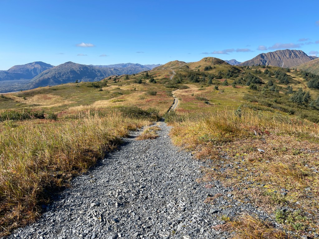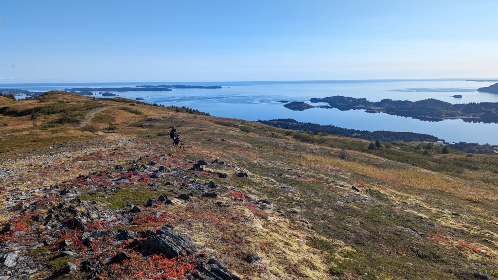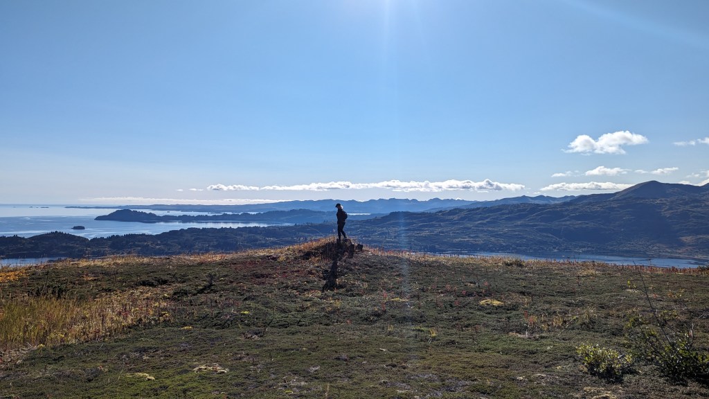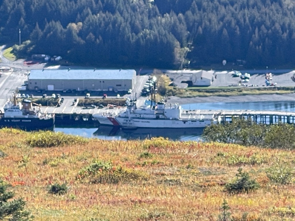 Features: Ridge line, small peak, easy to follow trail, views of Coast Guard Base KODIAK.