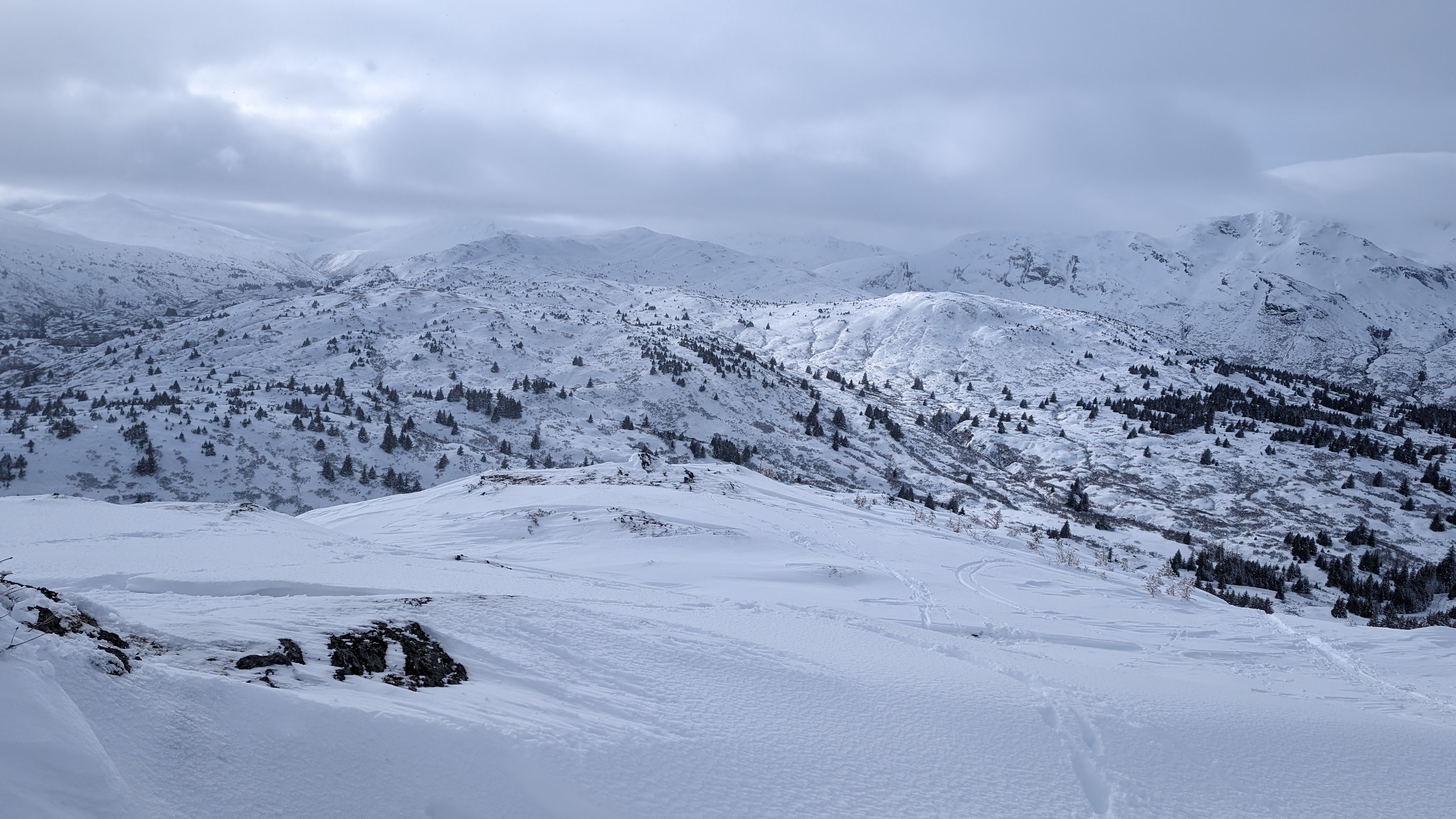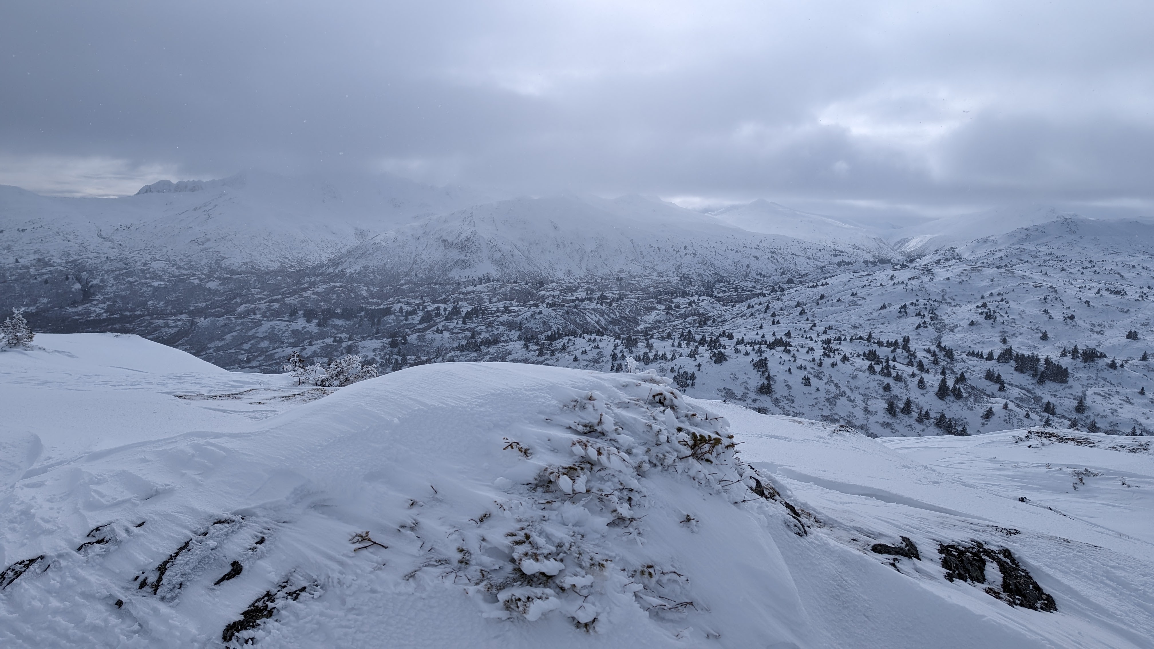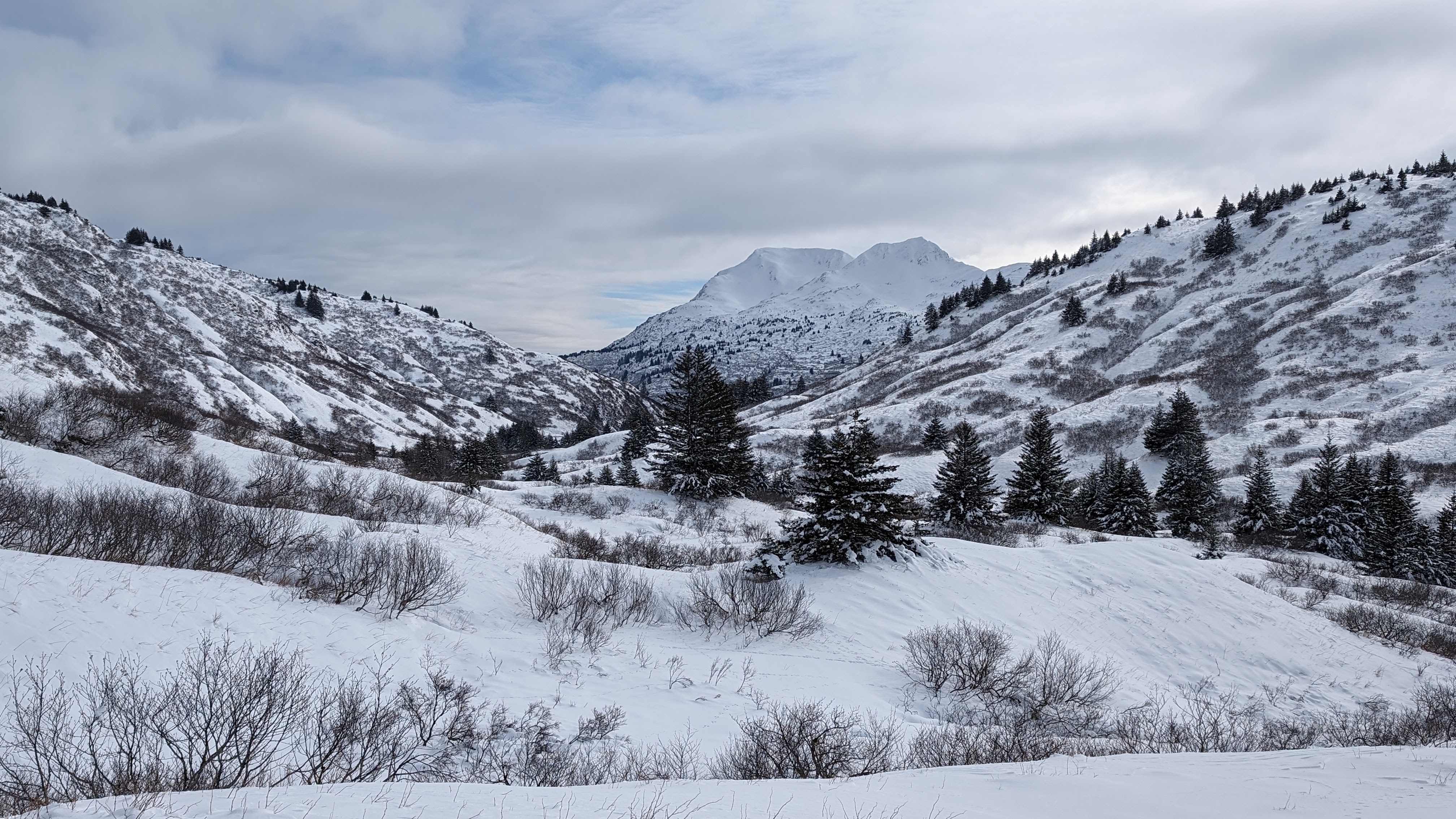 Unfortunately, I was injured before I could explore other places besides the fun I had on Pyramid Mt. However, friends and other Kodiak skiers have told me about skiing other areas.