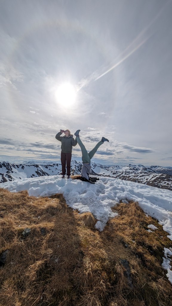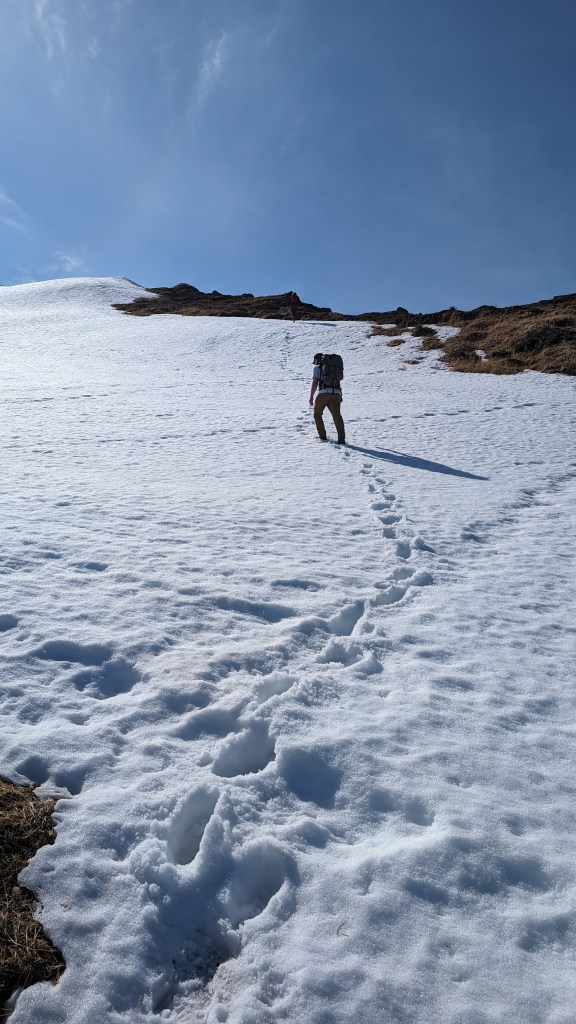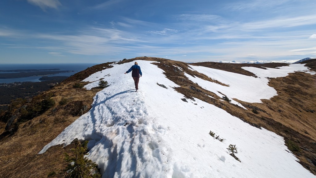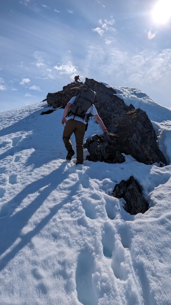 Description: South Sister was a major bucket list item for me, and the views were spectacular. We hiked through about a foot of snow up to Middle Sister and impromptu decided to summit South Sister also. We took the longer North Sister trail up to the saddle between North and Middle Sister, summited Middle Sister, climbed down the opposite side of Middle Sister, then up South Sister and back the same way. The down climb from Middle to South Sister was the most difficult part. It is a very steep rock scramble; we even found several climbing bolts anchored in the rocks. Be very careful, there are sliding rocks so a misstep or untrustworthy foothold would be bad. But if you aren’t afraid of heights and have confidence the scramble is very doable. I loved it, mildly sketchy rock scrambles are one of my favorite things to hike!!