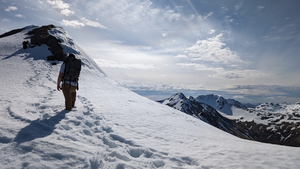 A common trail is to do all Three Sisters in a loop. First up the steep North Sister Trail, down the back up to Middle Sister then South Sister, and down the backside of South Sister to a much smaller ridge line. However, we decided not to do that because there was too much snow on North Sister and the backside of South Sister. I have also heard that in the spring there is a lot of bushwacking required.
